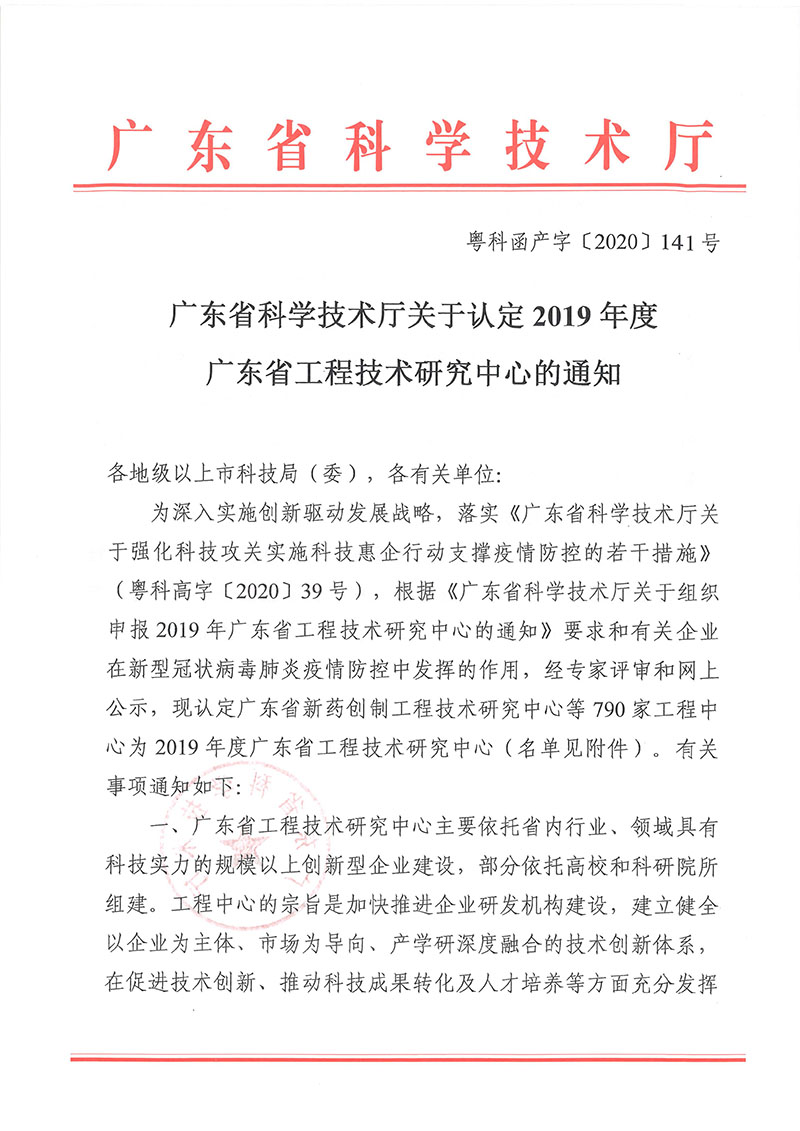 于2019年認定為廣東省工程技術(shù)研究中心